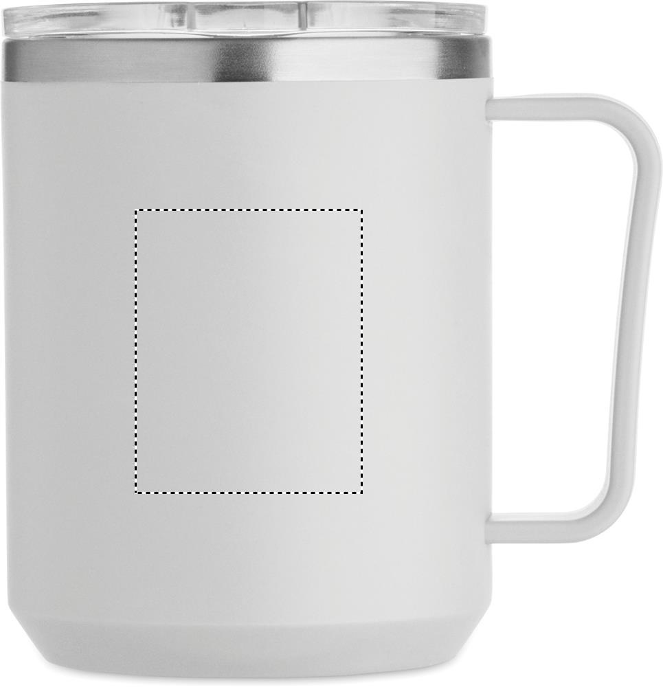 Topeltseinaga kruus, 90% taaskasutatud roostevaba teras ja 10% roostevaba teras ning välispind taaskasutatud polüpropüleen. Komplektis läbipaistev kaas. Mahutavus 400 ml.