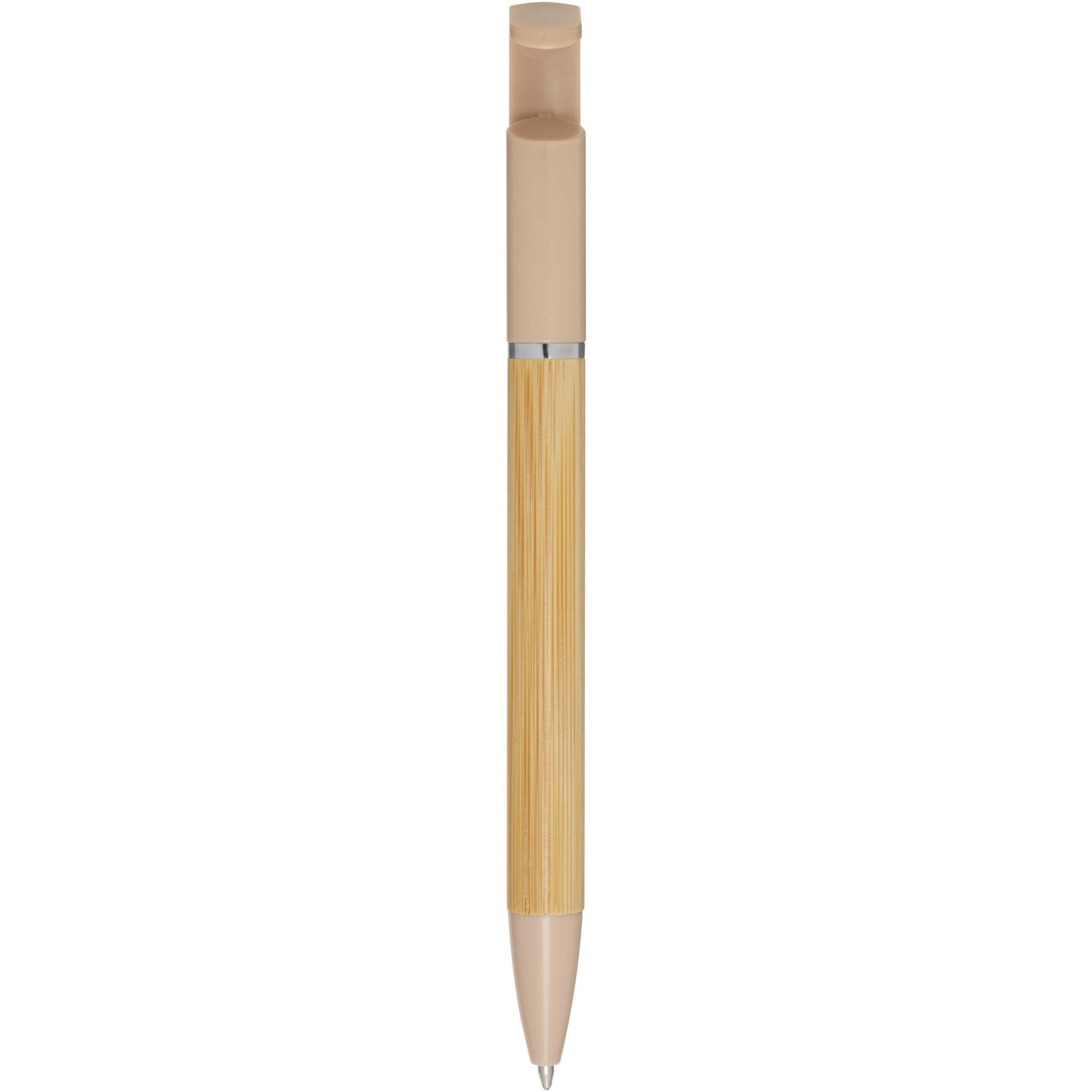 Bambusest pastapliiats, mis toimib ka telefonihoidjana. Nupp ja keskrõngas on valmistatud taaskasutatud plastikust, ots on valmistatud messingist ja silinder on valmistatud vastutustundlikult hangitud bambusest. Tindi värvus: sinine. Kirjutamise pikkus: 1000 meetrit. Otsa suurus: 1,0 mm.