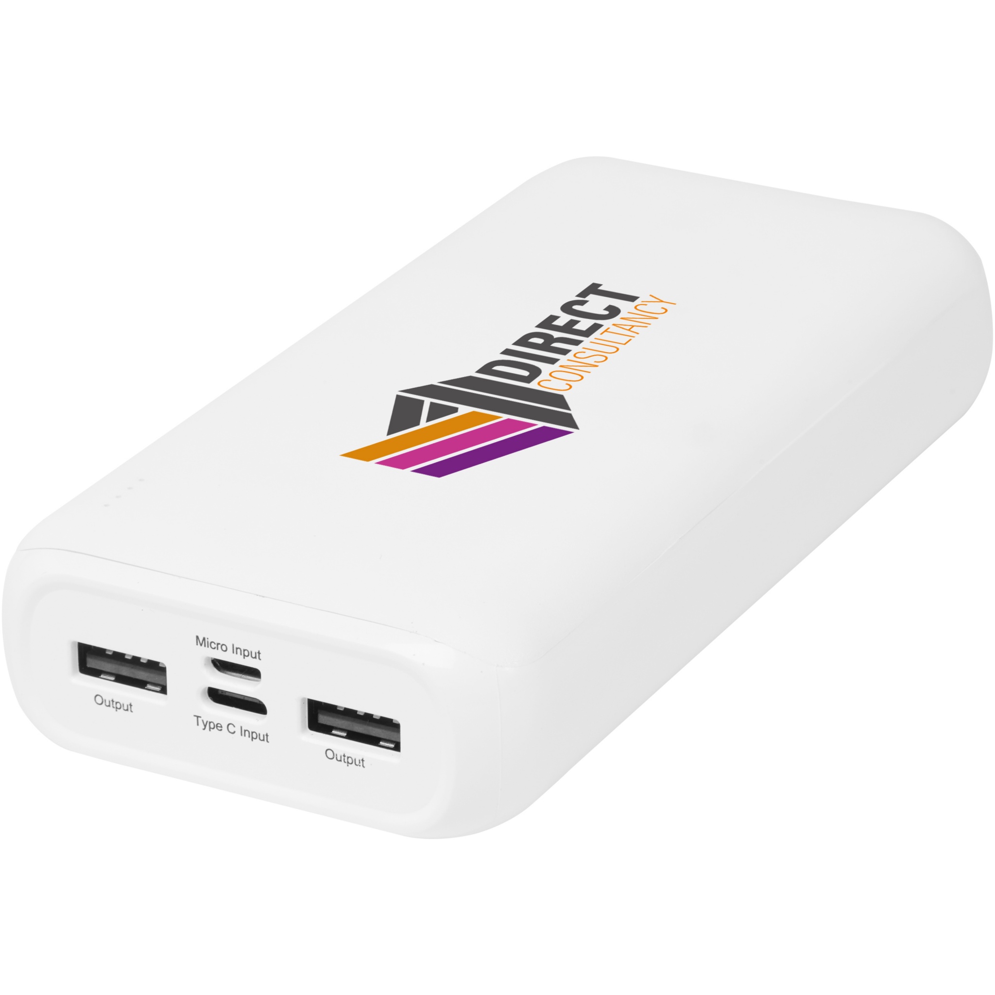 Electro 20 000 mAh akupank on valmistatud taaskasutatud plastist ja sellel on 4 porti, mis võimaldavad korraga mitme mobiilseadme kiiret laadimist. See akupank sisaldab A-klassi liitiumioonakut ja 4 LED-indikaatorit, mis näitavad aku järelejäänud mahtuvust. Mikro-USB/C-tüüpi sisend 5V/2A. USB väljund 1 5V/1A. USB väljund 2 5V/2.1A max. Koguvõimsus 10,5W. Kaasas 30 cm TPE USB A-tüüpi C laadimiskaabel. Tarnitakse jõupaberist kinkekarbi ja kasutusjuhendiga.