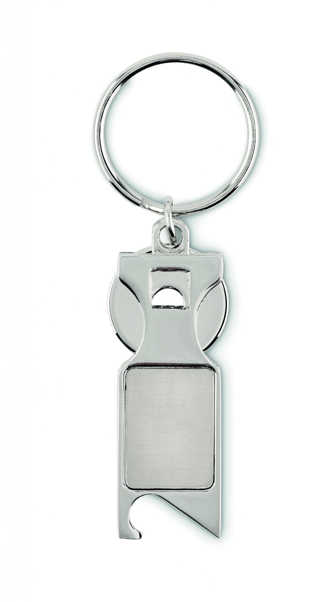 Tsingisulamist võtmehoidja koos euro märgi ja pudeliavajaga.