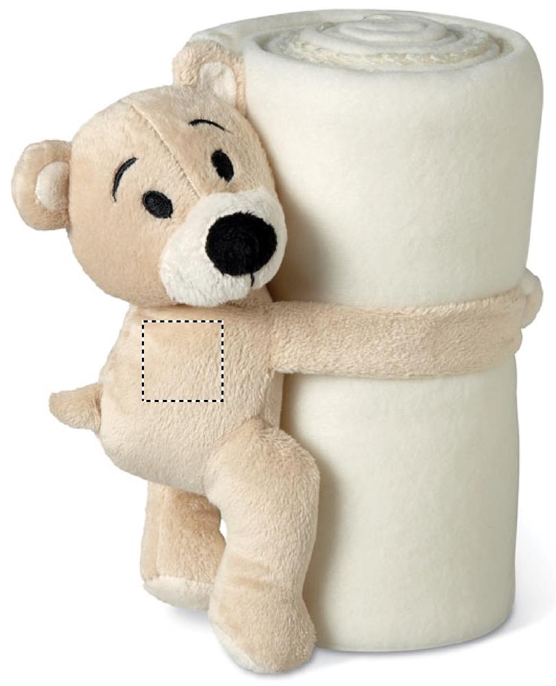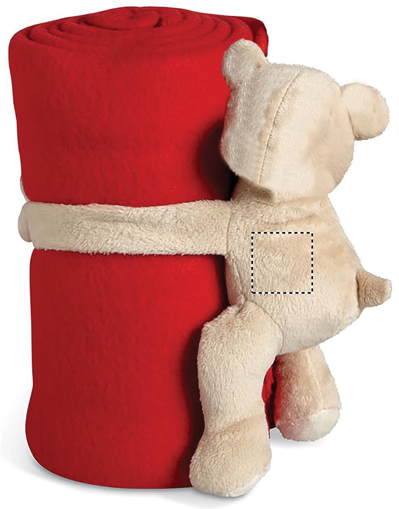 Laste fliis tekk kaisukaru mänguasjaga, mis hoiab teibi kätega tekki.