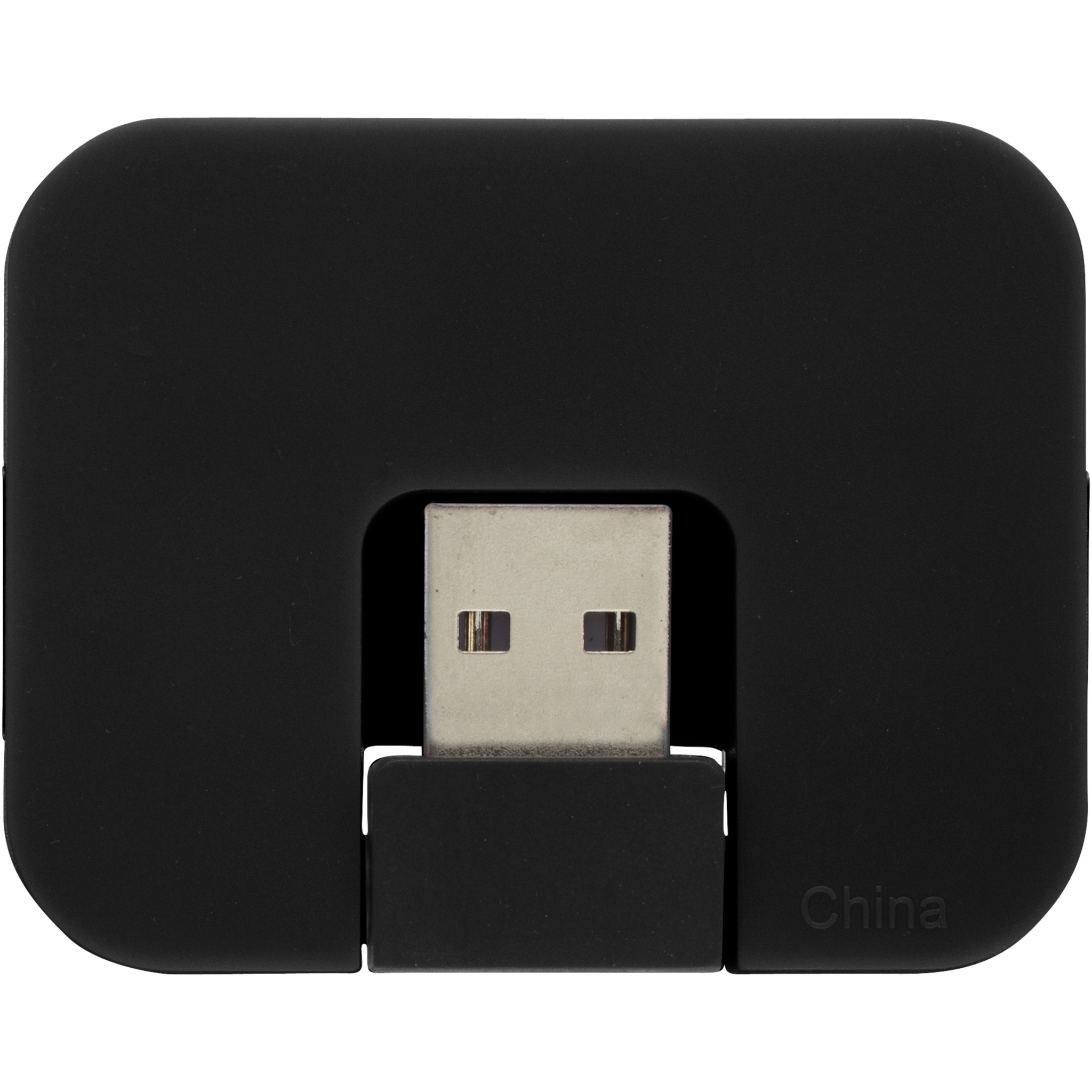 Gaia 4-pordiline USB-jaotur. 4-pordiline ristkülikukujuline kokkupandava sisendpordiga USB-jaotur. HIPS Plastik.