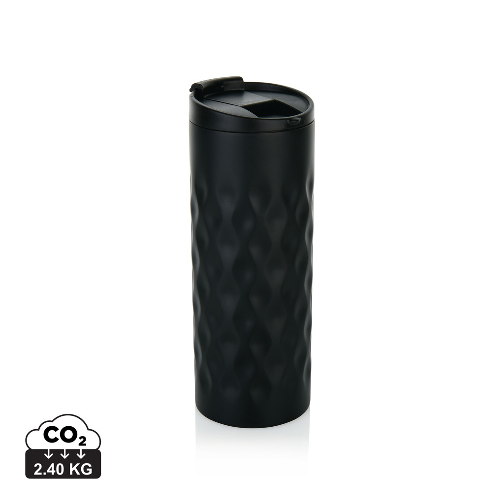 Roostevabast terasest topeltseinaga trummel, trendika geomeetrilise lõikega disain. Mahutavus 350 ml.