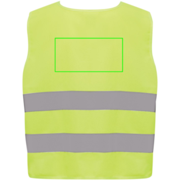 S-suuruses hästi nähtav vest, mis on mõeldud lastele vanuses 7-12 aastat, sobib neile, kelle pikkus on vahemikus 90-155 cm. See vest pakub kaunistuseks rohkelt pinda nii esi- kui ka tagaküljel. See on varustatud konksu ja aasa sulguritega õlgadel ja alaosas, pakkudes täiendavat turvalisust ja hõlbustades pingutusteta vesti selga panemist. Vastasolevad elastsed ribad tagavad venitavuse, võimaldades mugavat kandmist isegi suuremahuliste mantlite peal. See vest on läbinud testimise ja vastab EN 17353:2020 tüübile AB3. Lisaks järgib see isikukaitsevahendite juhiseid, mis on sätestatud määruses (EL) 2016/425 II kategooria isikukaitsevahendite kohta. Valmistatud GRS-sertifikaadiga taaskasutatud PET-st. Taaskasutatud kogusisaldus: 58% eseme kogukaalust. GRS-sertifikaat tagab taaskasutatud materjalide täielikult sertifitseeritud tarneahela.