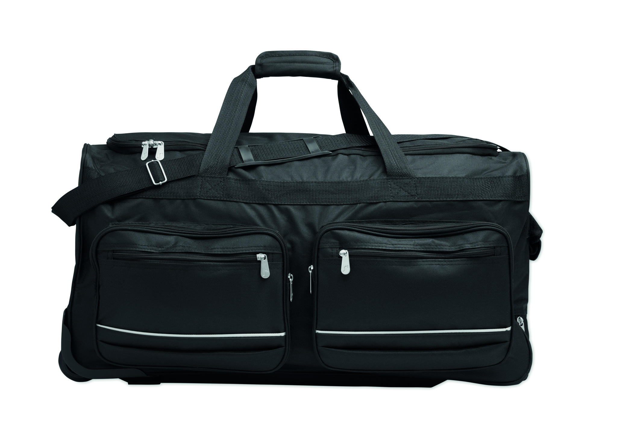 Pehme reisikott 600D RPET materjalist. Lukuga esitasku. Kaks küljetaskut. Kolm sisetaskut. Polsterdatud õlarihmad. Kaks ratast ja topelttoruga raam.