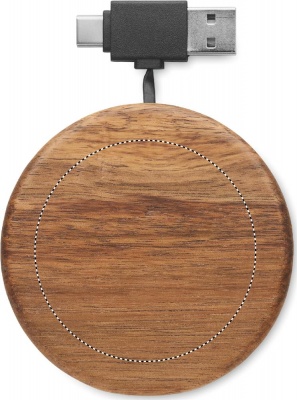 Logo trade reklaamtoote pilt: Juhtmeta akaatsiapuidust laadija 15W