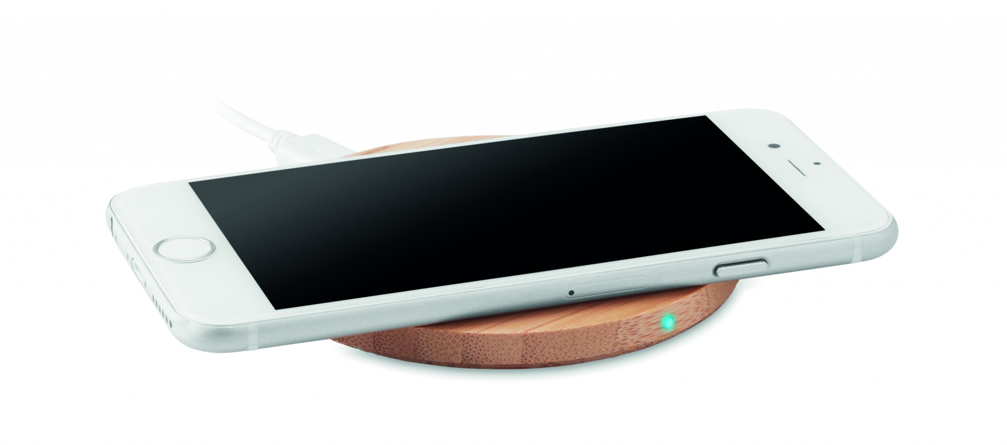 Logotrade firmakingi foto: Juhtmeta bambusest laadija 10W RUNDO +