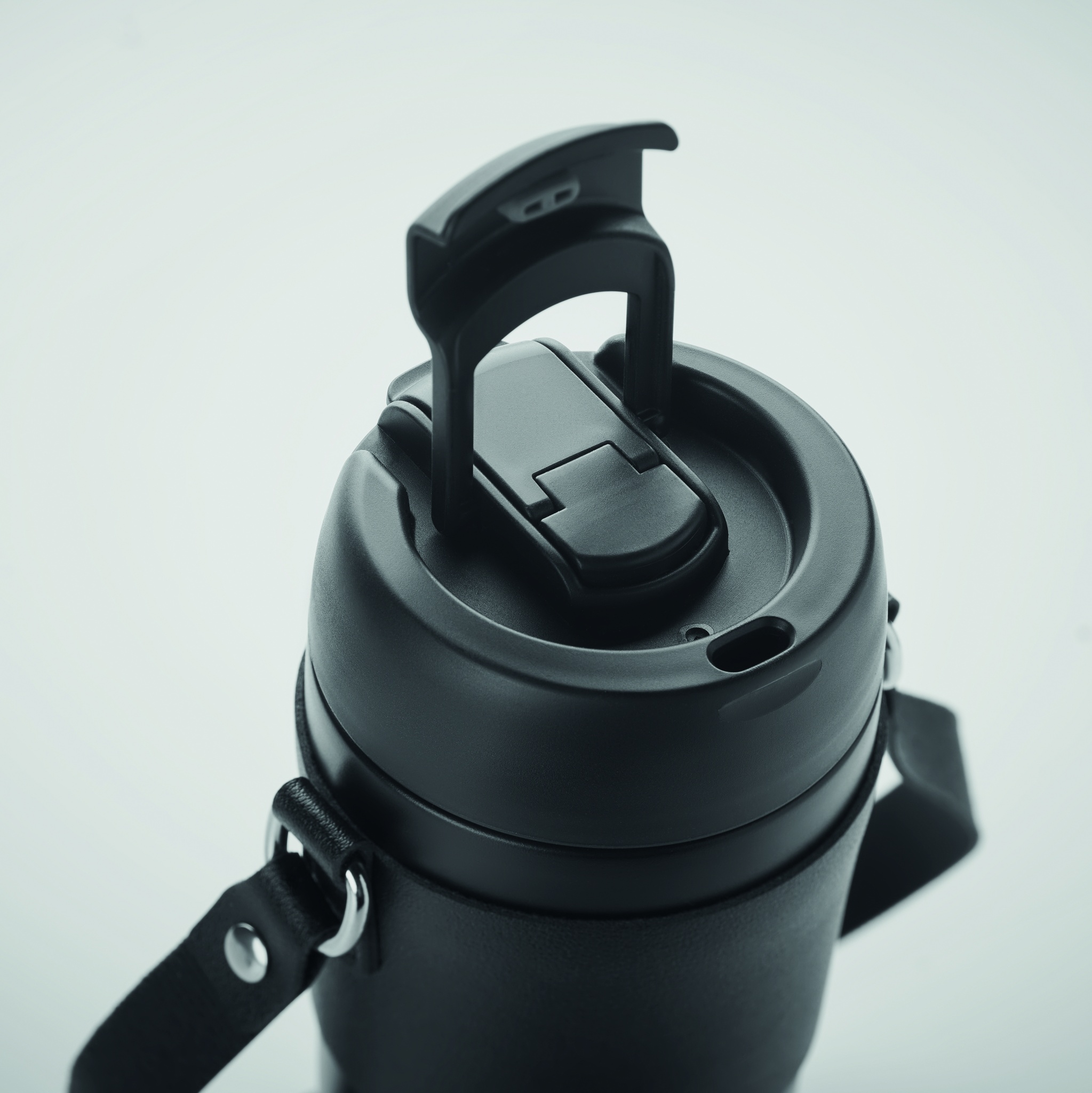 Kaheseinaline roostevabast terasest pulbervärvitud trummel PP kaanega (2-in-1 õlgedest kaas) ja PU kanderihmaga. Lekkevaba. Mahutavus: 700 ml.