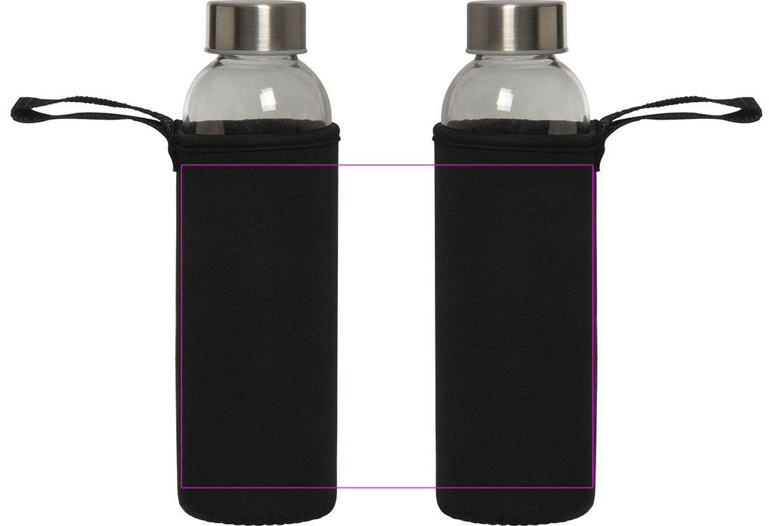 Roostevabast terasest kaanega klaasist lekkekindel joogipudel mahutavusega 500 ml. Pudel tarnitakse sobivas neopreenümbrises koos kanderihmaga. Trükime teie logo varruka keskele. Soovi korral on võimalik graveerida kaanele või pudelile ja trükkida pudelile.