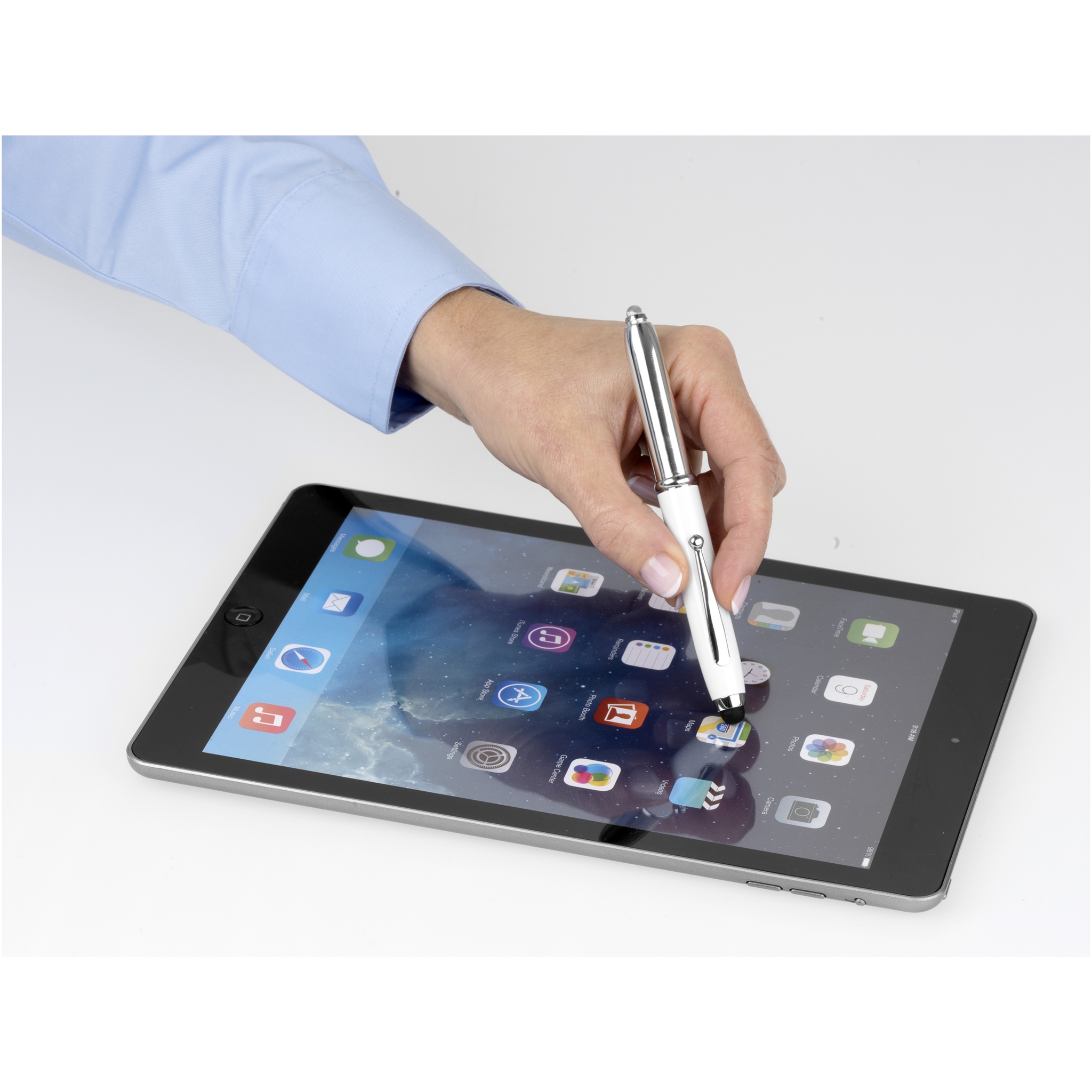 Stylus pastapliiats ühe LED-taskulambi ja eemaldatava korgiga. Patareid kaasas.