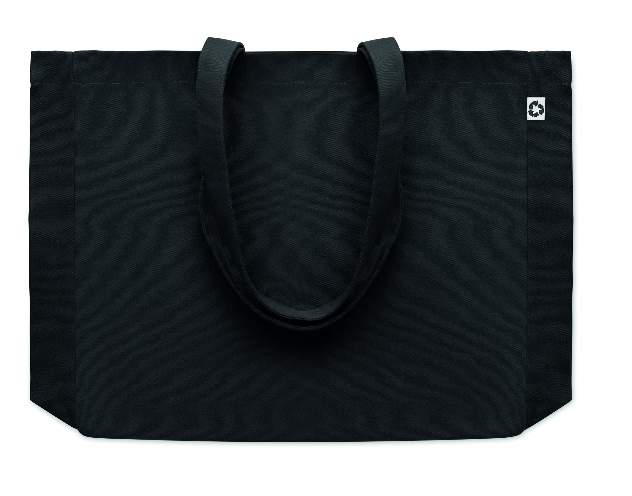 Taaskasutatud lõuendist ostukott või rannakott, 50% puuvill ja 50% taaskasutatud puuvill, pikkade sangade ja servadega. 280 gr/m².