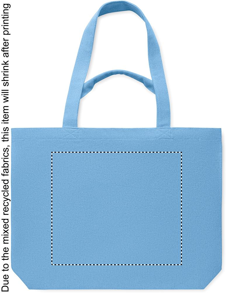 Taaskasutatud kangast (60% taaskasutatud puuvill, 40% taaskasutatud polüester) lühikeste ja pikkade sangadega ostu-/rannakott. 320 gr/m².