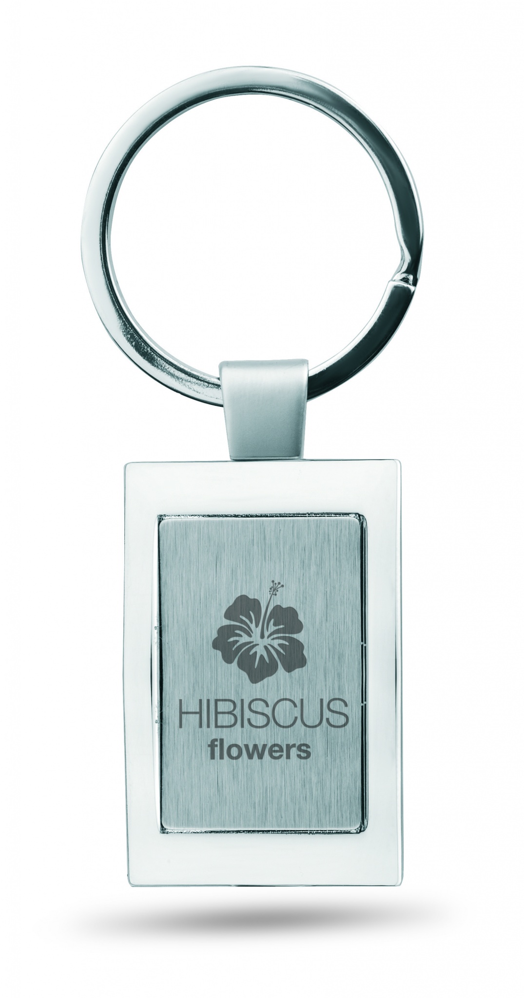 Metallist ristkülikukujuline võtmehoidja. Üksikult pakitud kinkekarpi.