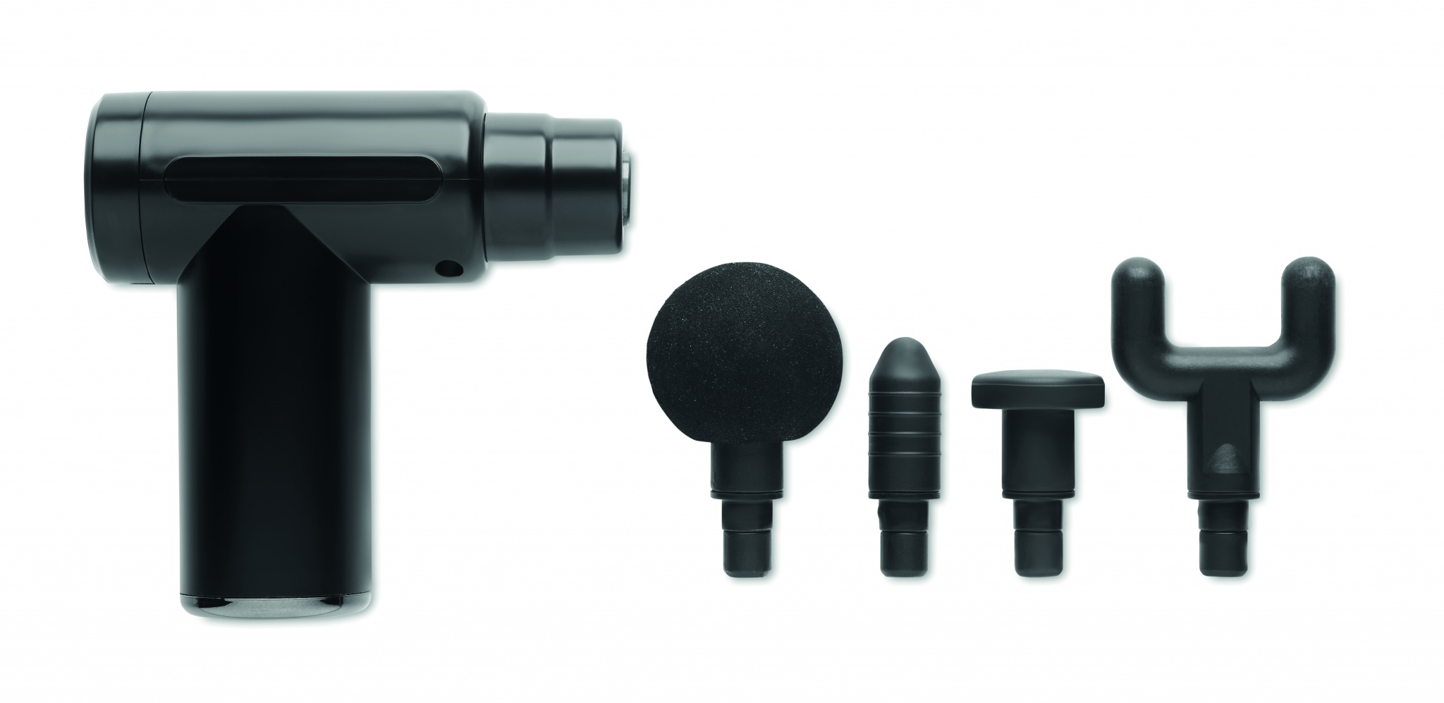 Kaasaskantav ABS-materjalist massaažiseade 4 vahetatava massaažipeaga. 6 kiirust. Sisaldab taaslaetavat liitiumakut 1200 mAh.