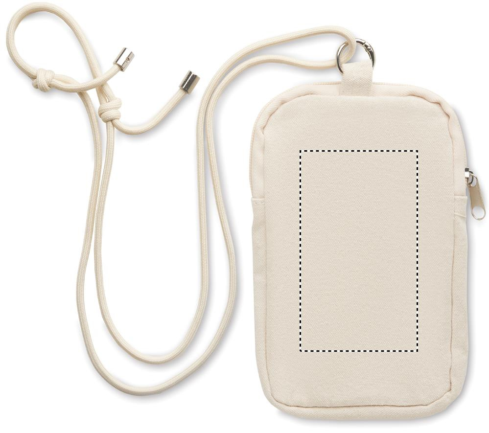 Must ümbertöödeldud puuvillast nutitelefoni kott RPET polüestrist reguleeritava kaelapaelaga, mille esiküljel on avatud tasku. 280 gr/m².