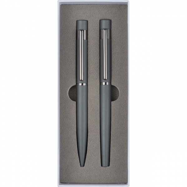 Elegantsus ja mugavus ühes komplektis! Komplektis on pastapliiats ja tindipliiats, mõlemal on sinise tindiga täidised ja kummeeritud pind mugavamaks käes hoidmiseks. Ideaalne igapäevaseks kasutamiseks või kingituseks.