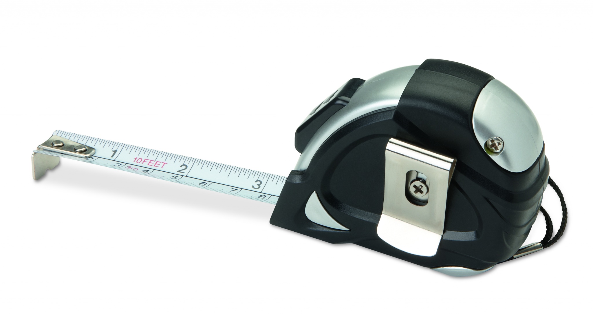 3m ABS mõõdulint hõbedases korpuses. Kaasas käerihm ja läikiv hõbedane metallklamber.