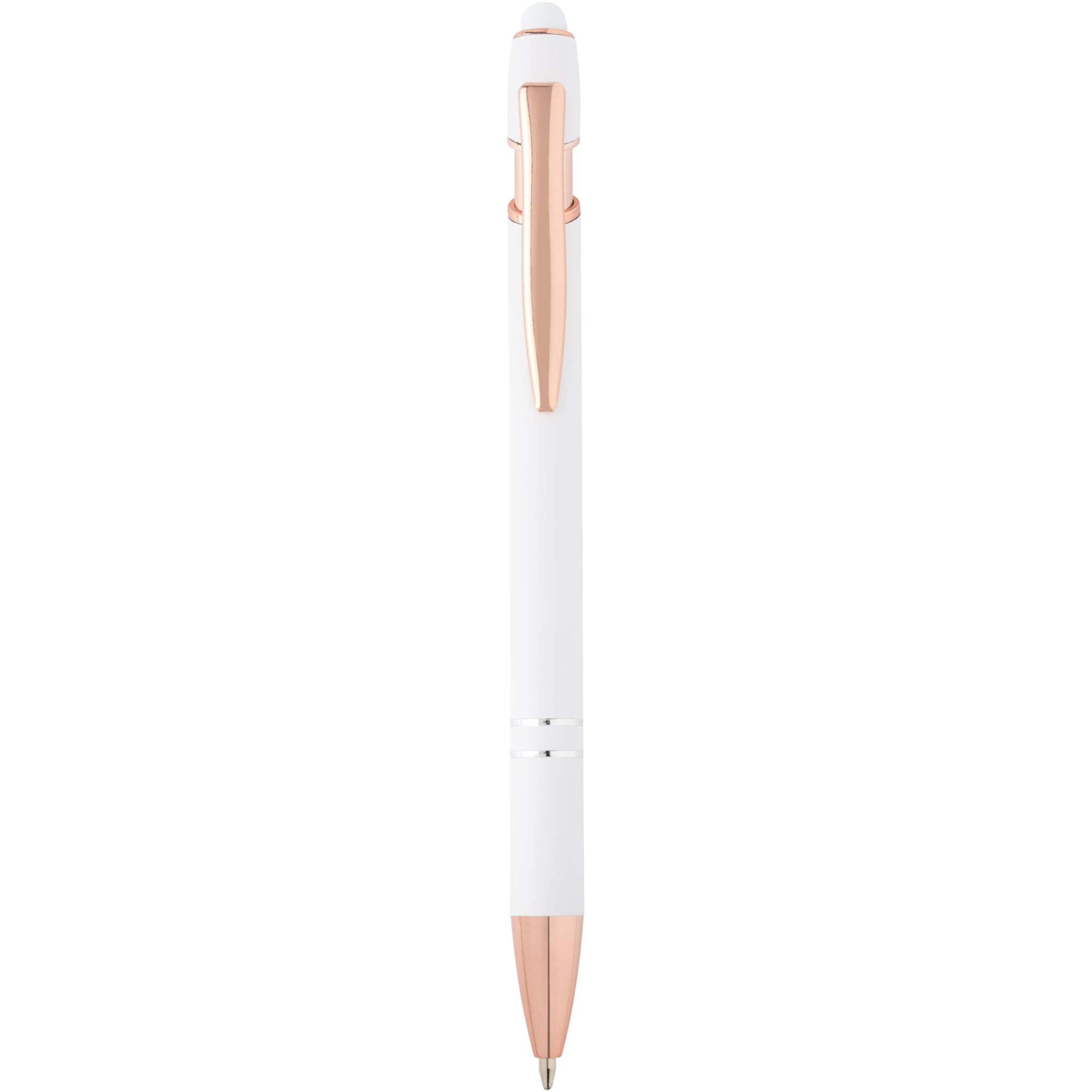 Roosa kuldse viimistlusega Nanna pastapliiatsil on taaskasutatud alumiiniumist silikoonist puutepliiatsiga toru. Taaskasutatud alumiinium vähendab prügilates jäätmete hulka ja aitab säästa loodusvarasid, et vähendada kasvuhoonegaaside heitkoguseid. Tindi värvus: sinine. Kirjutamise pikkus: 800 meetrit. Otsa suurus: 1,0 mm.