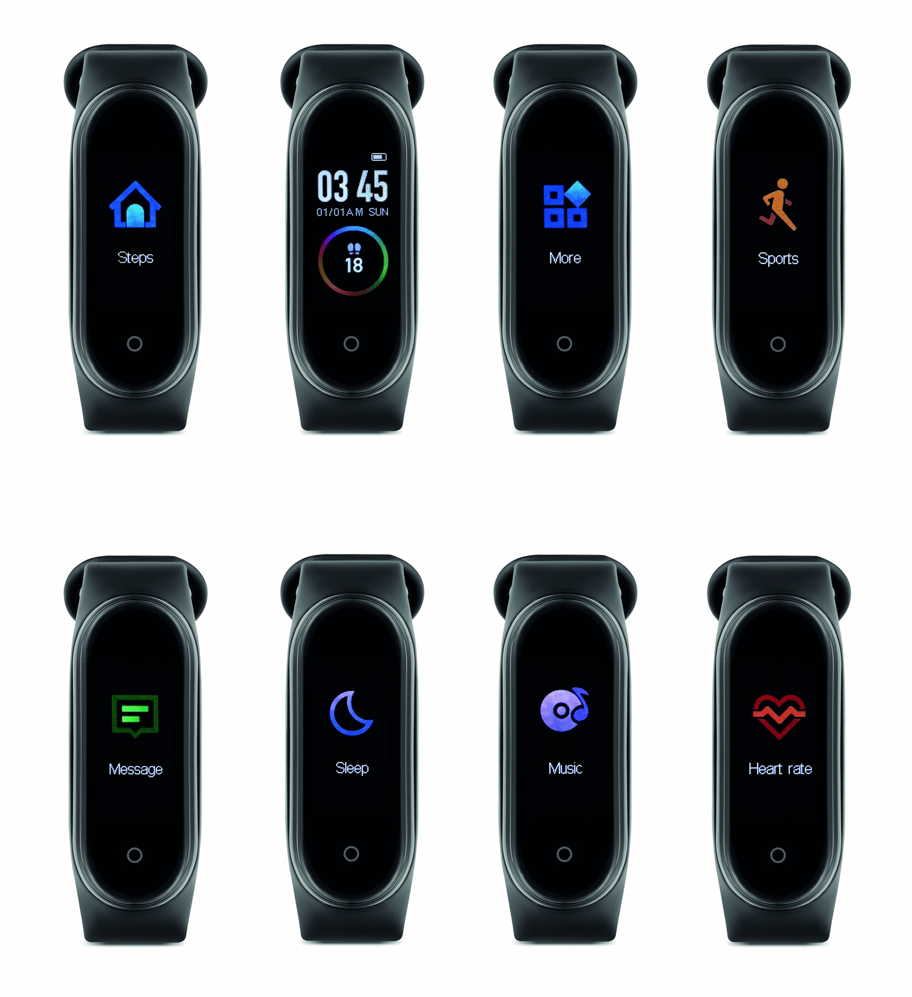 4.0 juhtmevaba nutikas ABS-ist tervisekell koos silikoonrihmaga. 0,96-tolline puutetundlik LCD-ekraan. Taaslaetav Li-Pol 90 mAh aku. Nõuab tasuta rakendust (HryFine on saadaval nii iOS-is kui ka Androidis).