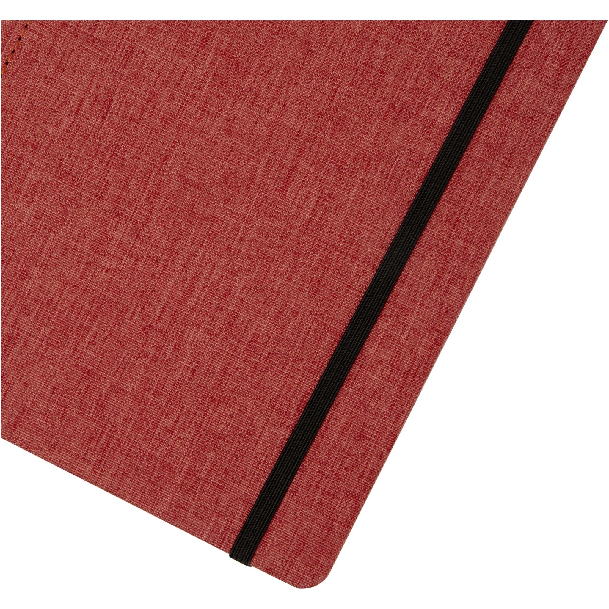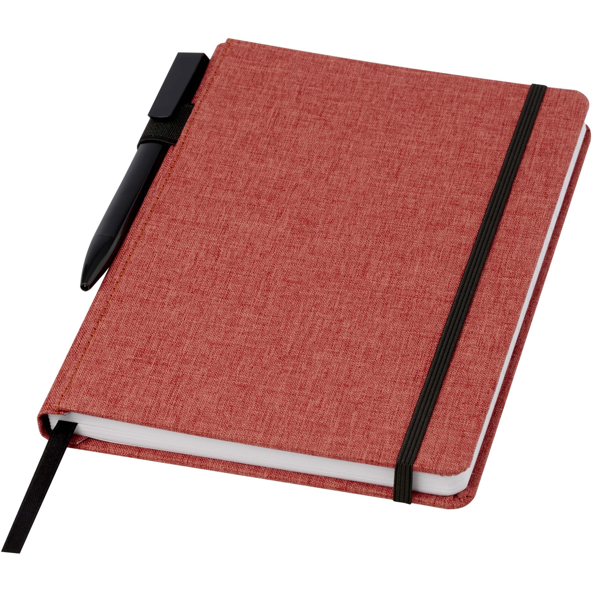 A5 suuruses märkmik kaanega RPET kangast. Sisaldab 96 lehte 70 g/m² vooderdatud paigutusega, pliiatsi aasa ja lindimarkeriga. Pakitud papist varrukasse.