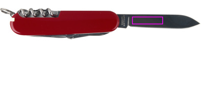 Omadused: 1.suur tera 2.väike tera 3.korgitser 4.purgiavaja: 5.-väike kruvikeeraja 6.pudeliavaja koos:7.-suur kruvikeeraja 8.traadieemaldaja hõõrits 9.stants 10.õmblusaas 11. võtmehoidja 12.pintsetid 13.hambaork 14.käärid 15.konks 16.puusaag