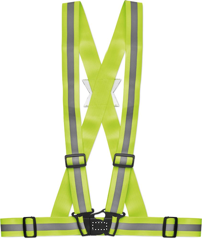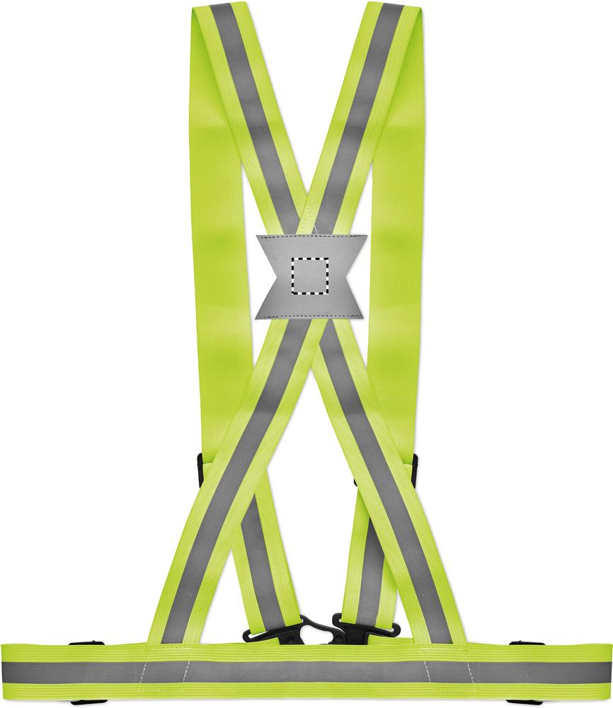 Hõbedaste triipudega reguleeritav 360° helkurvöö. Ainult reklaamiks kasutamiseks.