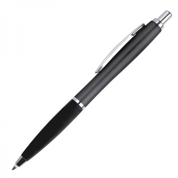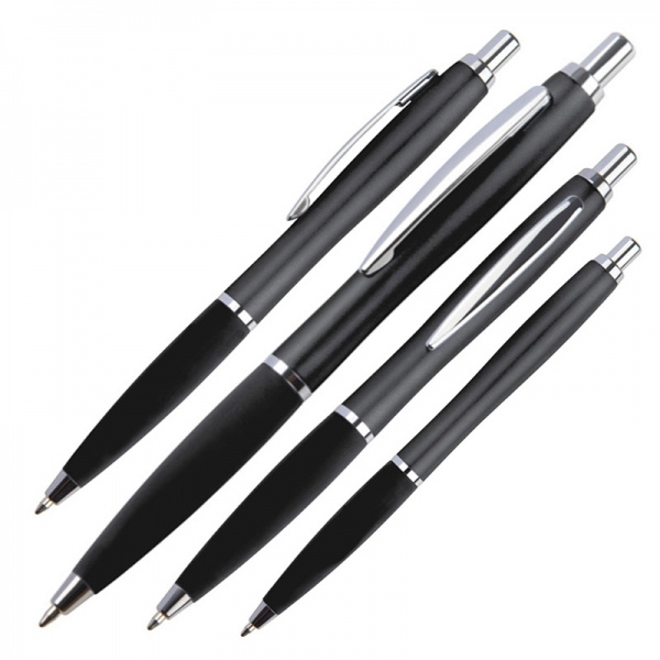 Õhuke plastikust pastapliiats sinise kirjaga plastikust täidisega ja kummeeritud käepidemega. Teie logo trükitakse klipi alla.