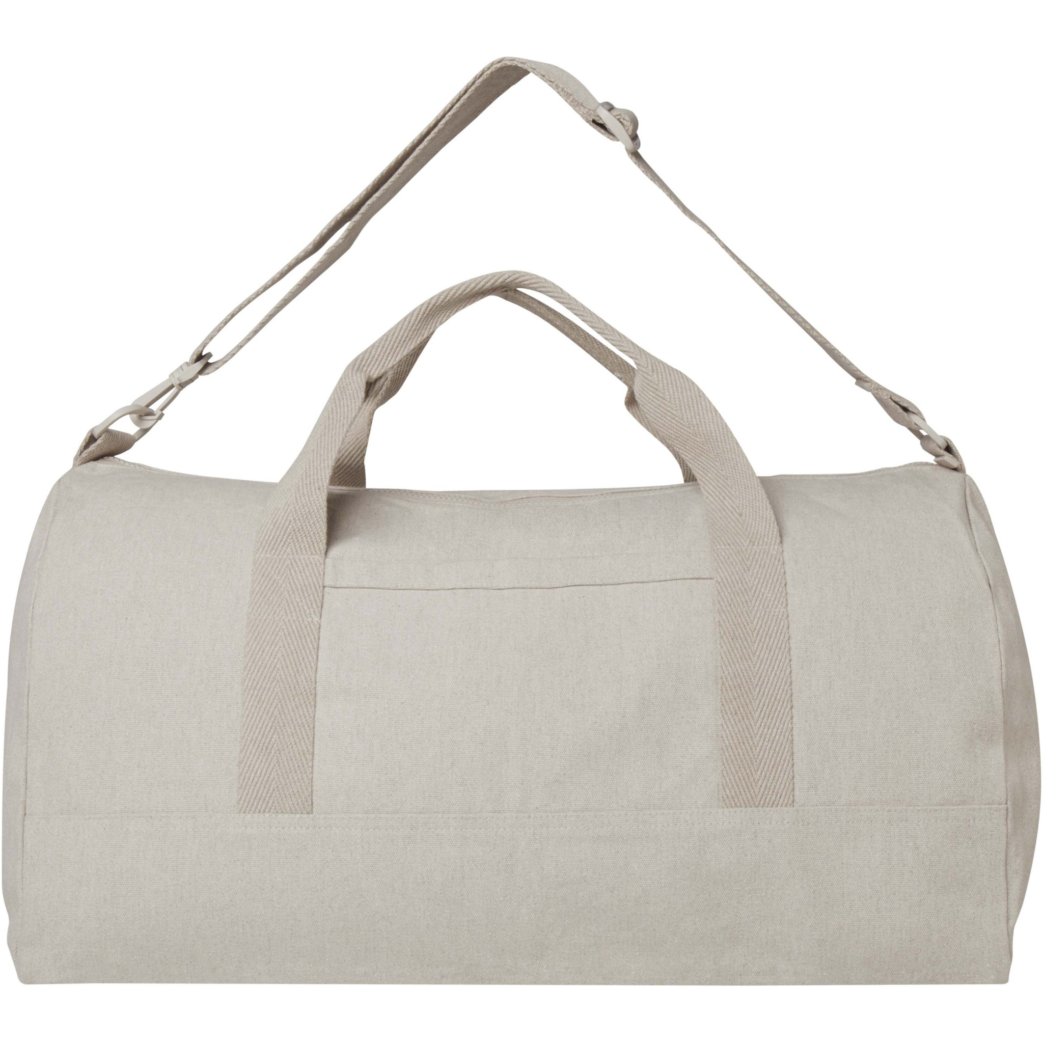 Ümbertöödeldud puuvillast ja ringlussevõetud polüestrist valmistatud kotil on avar põhisahtel suuremate esemete optimaalseks hoiustamiseks ja väike eesmine tasku väikeste esemete (nt passi või telefoni) hoidmiseks. Reisikotti saab kanda kahe lühikese käepideme või laiendatava ja eemaldatava õlarihma abil, mida saab maksimaalse mugavuse tagamiseks reguleerida. Iga kotiga on kaasas ka Aware™ märgistus. See uuenduslik funktsioon võimaldab kasutajatel QR-koodi abil jälgida oma kauba päritolu ja teekonda, suurendades tarneahela läbipaistvust ning soodustades tugevamat seost toote ja selle tootmisprotsessi vahel. Maht: 50 liitrit.