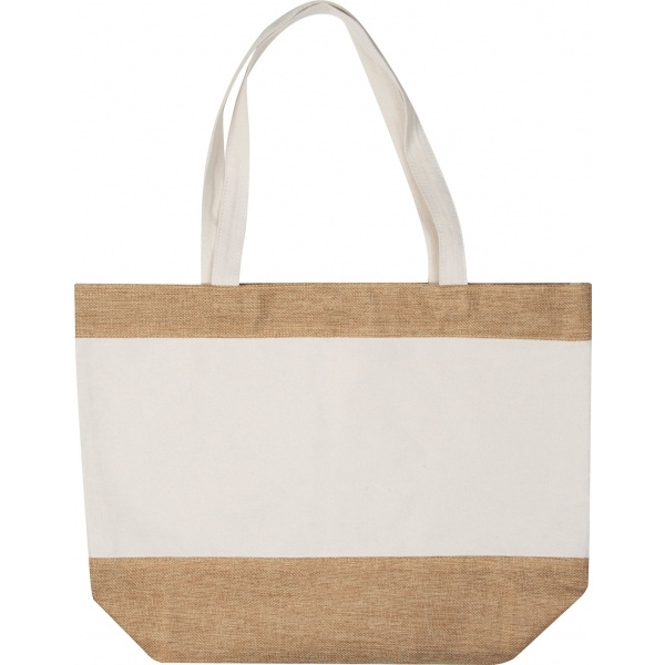 Puuvillast ja džuudist valmistatud keskkonnasõbralik pikkade sangadega rannakott. Kõik teie rannareisi jaoks sobib siia. Teie logo trükitakse ühele küljele.