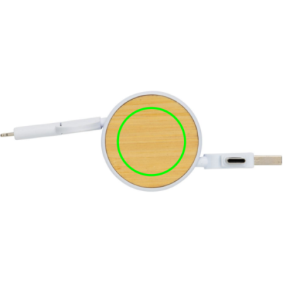 Kompaktne ja hõlpsasti kaasaskantav sissetõmmatav multikaabel, mis on valmistatud sertifitseeritud taaskasutatud materjalidest. Kaasas 5 erinevat pistikut: USB C sisend, USB A sisend, C tüüpi väljund, IOS väljund ja mikro USB väljund. See võimaldab kaablit kasutada ka C-tüüpi väljundseadmetega, mis on kaasas uuema põlvkonna telefonidele ja Macbook arvutitele. Kaablil on ka USB A väljundsisend, nii et sellega saab laadida mis tahes seadet mis tahes väljundallikast. Korpus on valmistatud FSC bambusest ja RCS-sertifikaadiga taaskasutatud ABS-st, kaablid on valmistatud RCS-sertifikaadiga taaskasutatud TPE-materjalist. Taaskasutatud kogusisaldus: 63% eseme kogukaalust. Maksimaalne kaabli pikkus: 100 cm. Pakitud FSC segatud kraft varrukapakendisse. RCS-sertifikaat tagab taaskasutatud materjali täieliku sertifitseeritud tarneahela. PVC vaba.