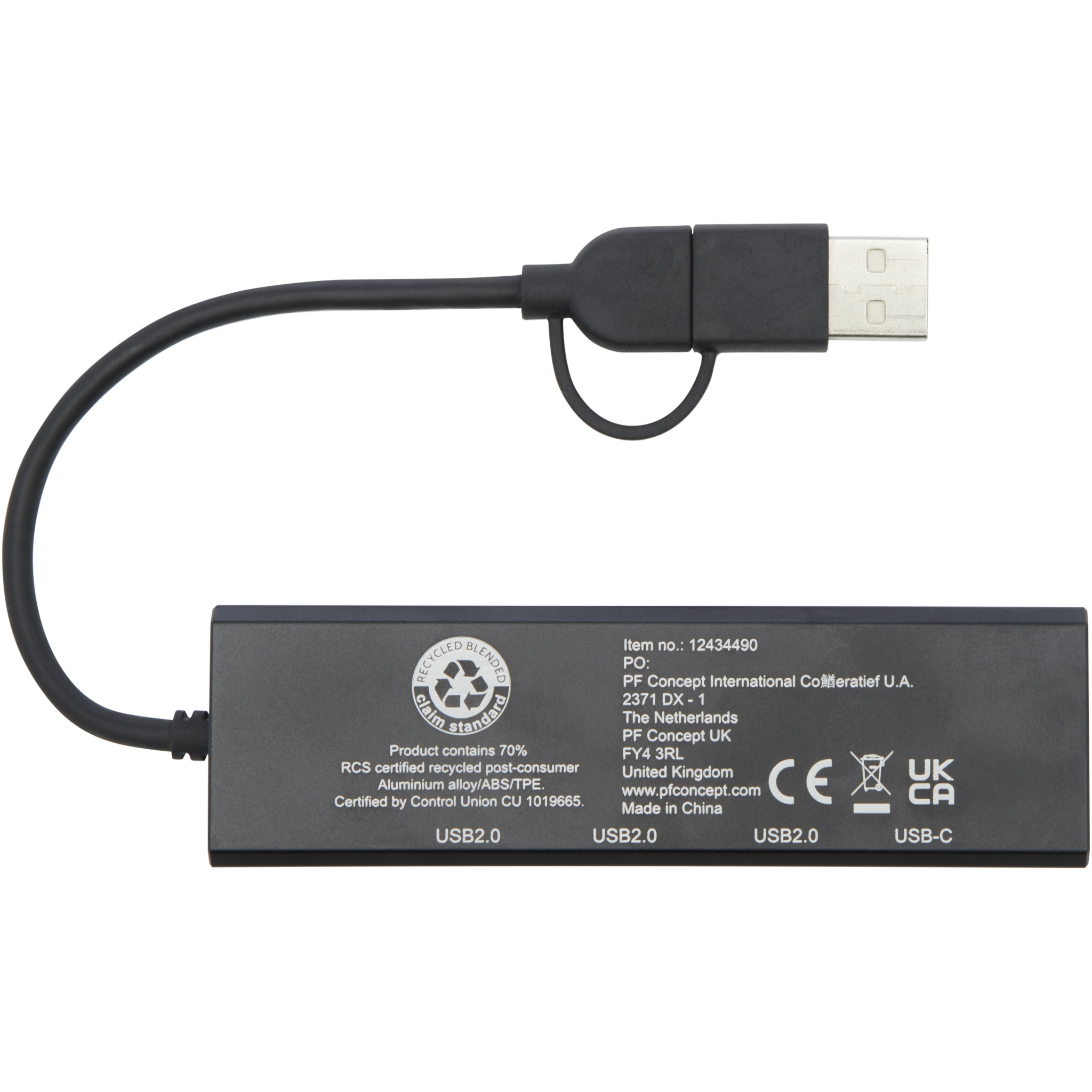 RCS-i ümbertöödeldud alumiiniumist valmistatud USB 2.0 jaotur elegantse ristkülikukujulise taaskasutatud alumiiniumist korpusega. Sellel on 3x USB 2.0 porti ja 1x Type-C PD (Power Delivery) port, mis võimaldab teil edastada andmeid edastuskiirusega kuni 480 Mbps. Kaasasolev C-tüüpi sisendadapter võimaldab teil seda seadet kasutada nii USB-A kui ka C-tüüpi sülearvutite ja arvutitega. Tarnitakse 100% taaskasutatud jõupaberist karbis, millel on värviline kleebis.