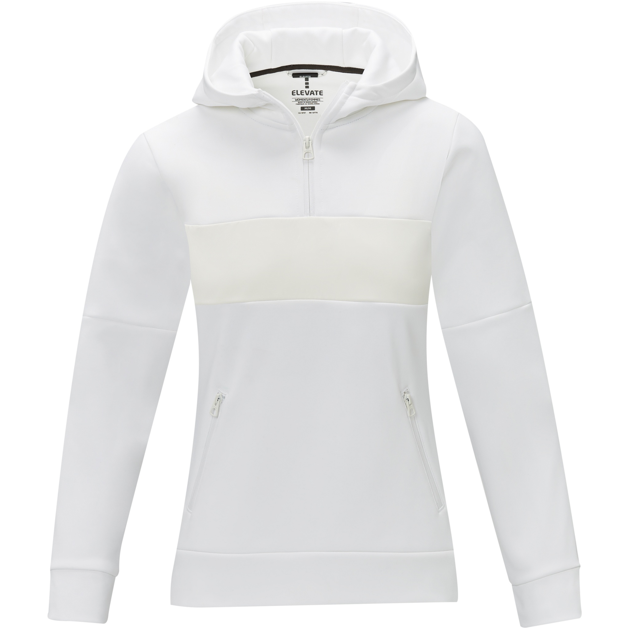 Naiste pooleldi lukuga anorak kapuutsiga sviiter Sayan – ainulaadne jõudluse ja stiili kombinatsioon. Anoraki disain ühendab moe ja funktsiooni sujuvalt ning sellel on veerand tõmblukk, mis muudab kihistamise mitmekülgseks. Valmistatud 350 g/m² polüestri ja Sorona® kudumi segust. Sorona® kiud suurendab jope keskkonnasõbralikkust, sisaldades säästvat elementi jõudlust tegemata. Esipaneeli kontrastkangas, mis on valmistatud 280T ripstop nailonist, lisab disainile oma vastupidavuse ja tekstuuri ning on ideaalne koht teie kaubamärgi esitlemiseks. Olenemata sellest, kas asute väljas seiklema või lihtsalt navigeerite oma igapäevases rutiinis, ühendab Sayani kapuutsiga kampsun moe ja funktsiooni vaevata. See kampsun on kujundatud liibuva kujuga, et anda naiselik välimus.