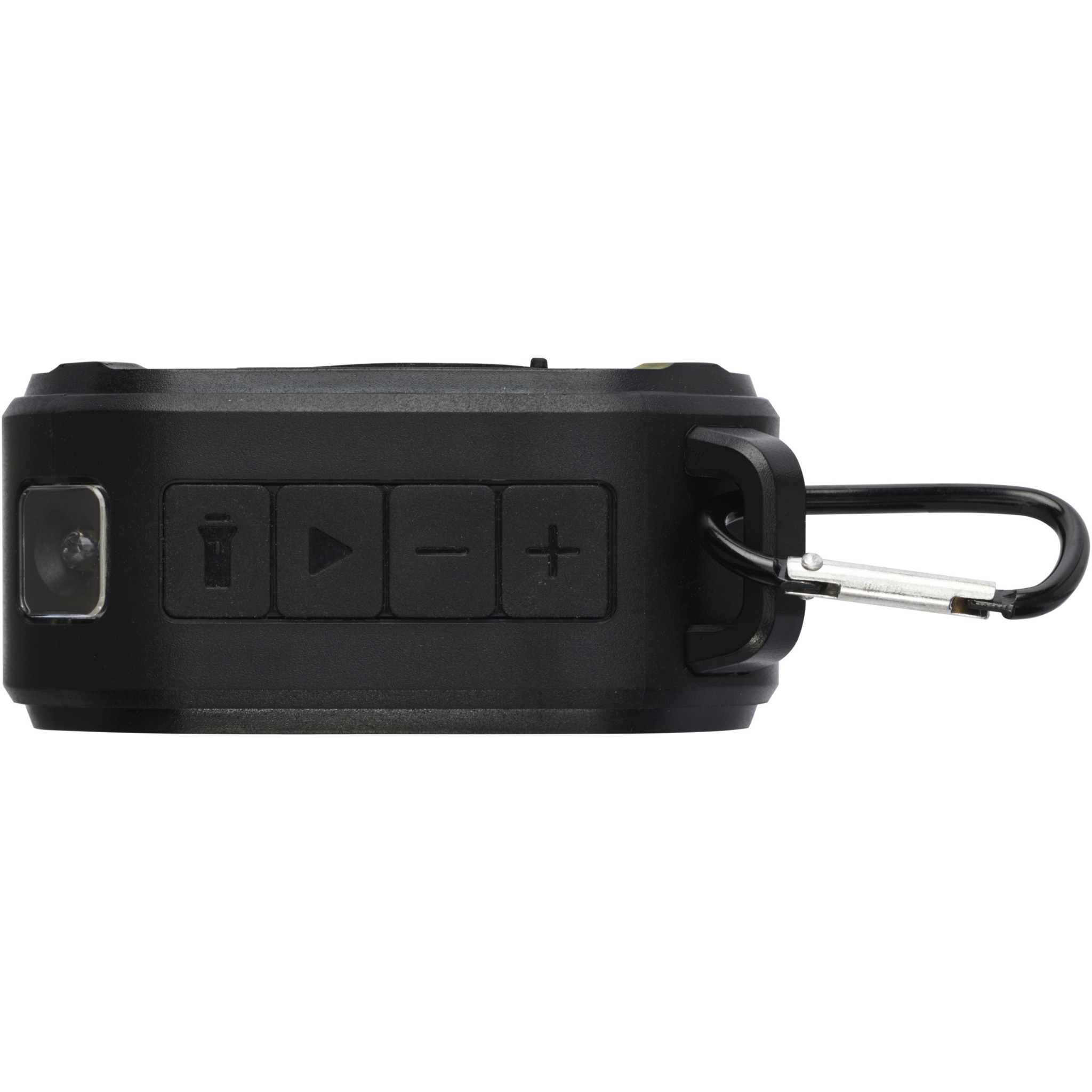 Solo 3W IPX5 RCS taaskasutatud plastikust päikeseenergia Bluetooth® kõlar karabiiniga , Täiesti must