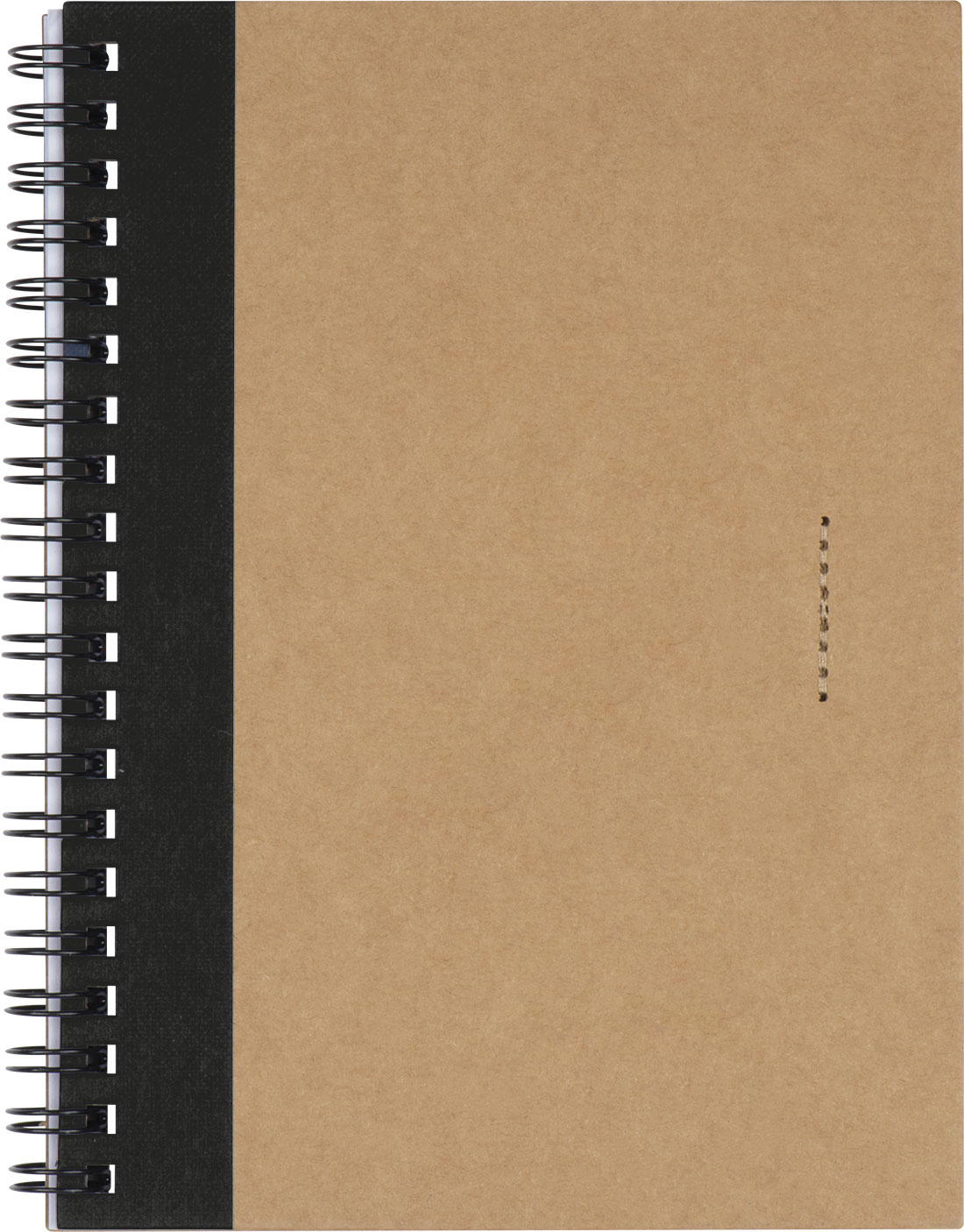 Spiraalköites märkmik 120 taaskasutatud paberist tühja lehega (kaas 250 g/m2, lehed 60 g/m2) ja pliiatsiaas. Kaasas on sobiv taaskasutatud paberist pastapliiats, millel on asendamatu sinise kirjaga täidis ja ABS-plastist aktsent.