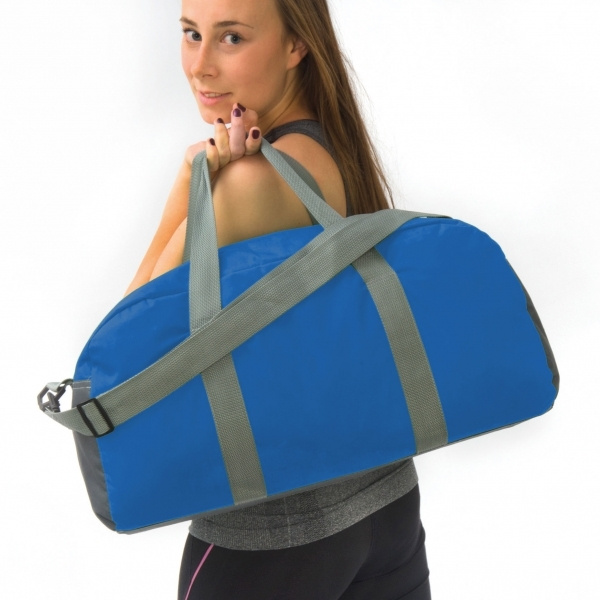 Suur 600D polüestrist spordikott suure sisemise sahtli, kandesangade ja reguleeritava õlarihmaga. Trükime teie logo ühele küljele.