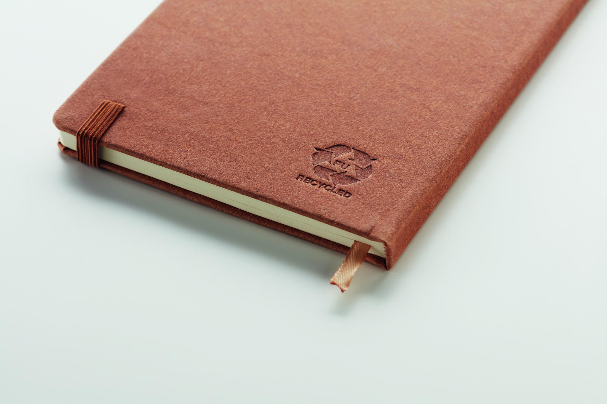 A5-formaadis sülearvuti 70% taaskasutatud nahast ja 30% lateksist PU kaanega. Casebound. 160 joonega lehekülge taaskasutatud paber (80 lehte). Sobiv elastne sulgemisrihm ja pliiatsihoidja.