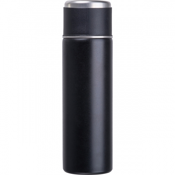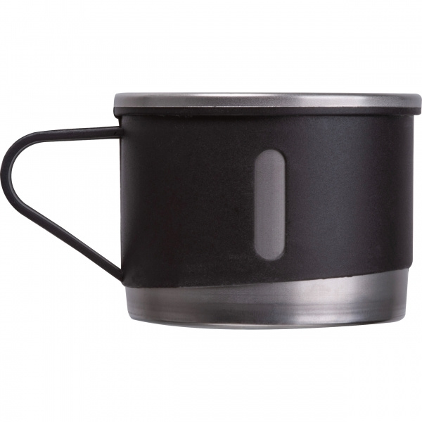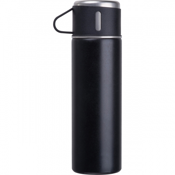 Termospudelite komplekt, mis koosneb kaheseinalisest roostevabast terasest termospudelist (400 ml) ja kolmest roostevabast terasest joogitopsist (120 ml) plastkattega.