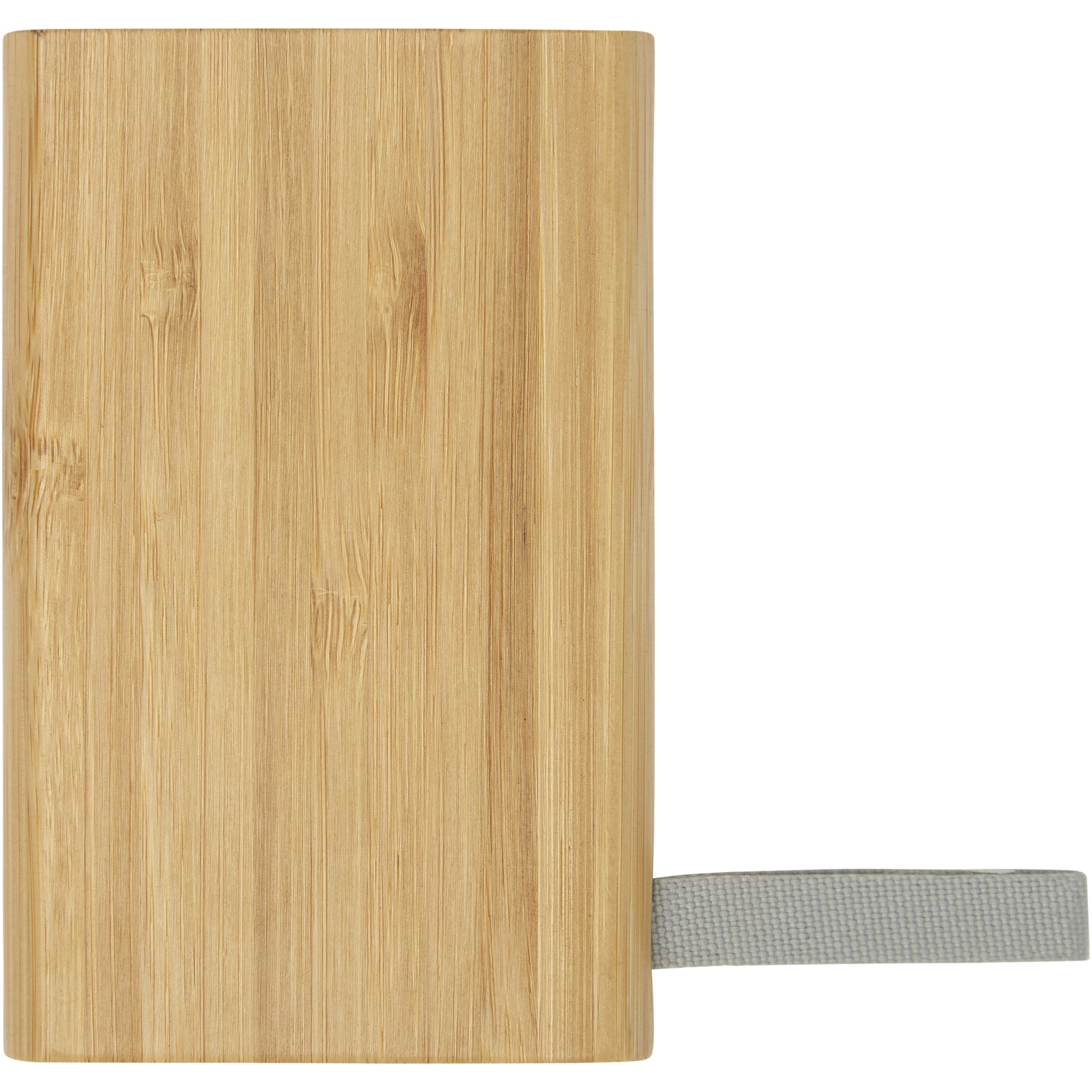 Bambusest toitepank, mis pakub 5000 mAh tagavaratoidet mobiiltelefonidele või teistele digitaalsetele seadmetele. Sellel on LED-indikaatortuled ja RPET-materjalist rihm. Pakitud kinkekarpi ja tarnitakse koos kasutusjuhendiga (mõlemad säästvast materjalist). Kaasas mikro-USB laadimiskaabel. Kuna bambus on looduslik toode, võib iga eseme värvus ja suurus veidi erineda, mis võib mõjutada lõppviimistlust.