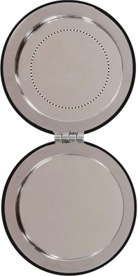 Ümmarguse kujuga magnetkinnisega topeltpeegel PU-kattega.