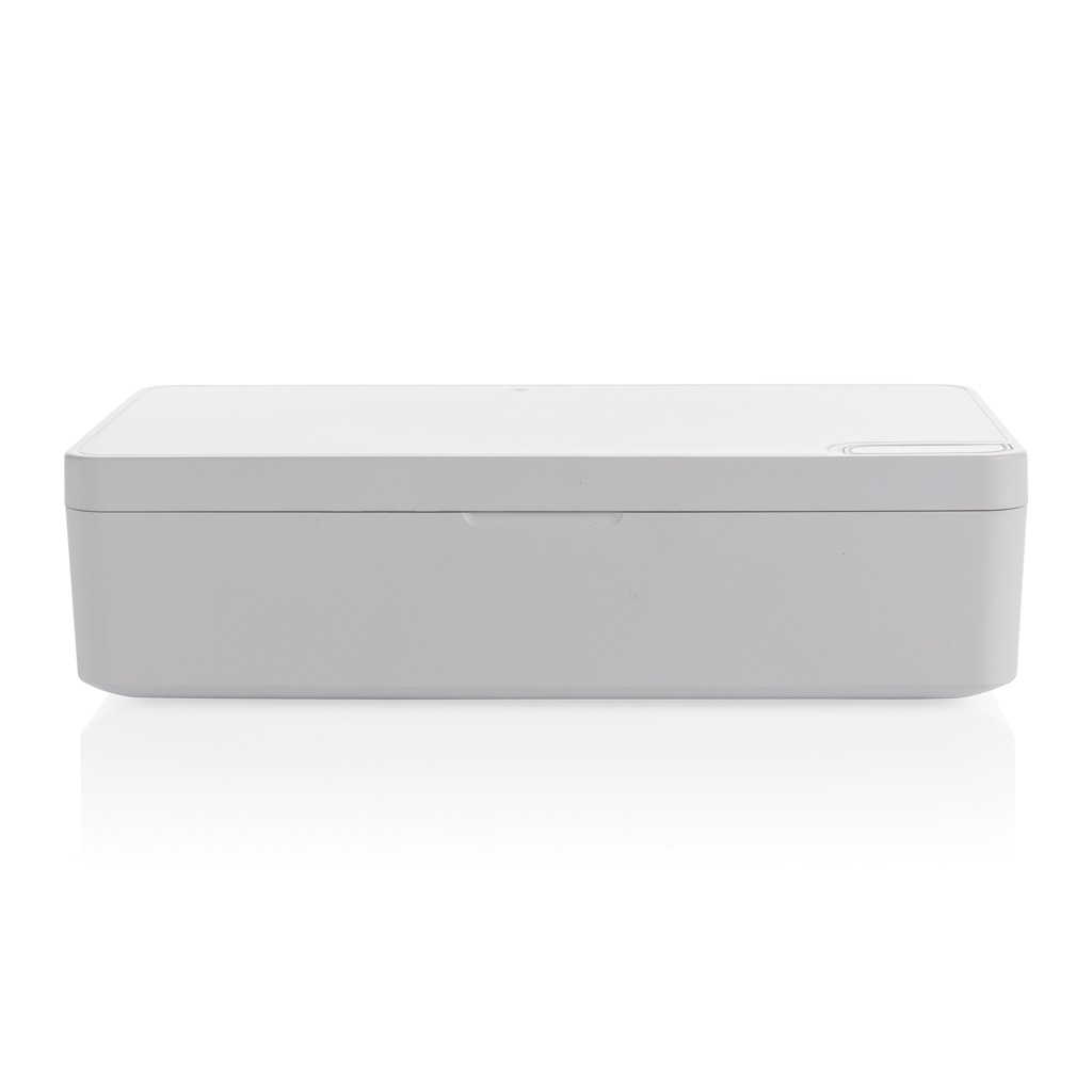 Multifunktsionaalne UV-C sterilisaator, mis tapab kuni 99,9% seadmesse paigutatud bakteritest. Asetage esemed, nagu kõrvaklapid, ehted, käekellad ja näomask, lihtsalt steriliseerimisseadmesse, et steriliseerida need UV-C tehnoloogia abil. Saate valida, kas teha kiire puhastus 90 sekundiga või täielik puhastus 5 minutiga. Sees olev 2 UV-C LED-lampi on mittetoksiline ja valmistatud ilma elavhõbedata nagu paljud turul olevad UV-lambid. Disain tagab ka selle, et UV-C LED-tuli lülitub karbi avamisel automaatselt välja, nii et kasutaja ei puutuks kokku UV-C valgusega. Tulede eluiga on 10 000 tundi. Kaasa arvatud 100 cm PVC-vaba TPE C-tüüpi kaabel
