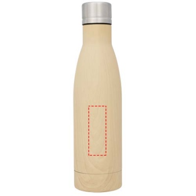 Vasa vaskvaakumisolatsiooniga pudeli abil hoidke oma jooke kuumana 12 tundi või külmana 48 tundi. Kahekordse seinaga ja roostevabast terasest valmistatud vaakum-isolatsiooni ja vasega kaetud siseseinaga, mis tähendab, et teie jook hoitakse vastavalt teie vajadustele kuuma või jääkülma. Pudel on naturaalse puidu välimusega. BPA-vaba ning testitud ja heaks kiidetud Saksamaa toiduohutuse seadusandluse (LFGB) alusel ning ftalaatide sisalduse jaoks REACH-määruse alusel. Maht: 500 ml. Tarnitakse kinkekarbis.