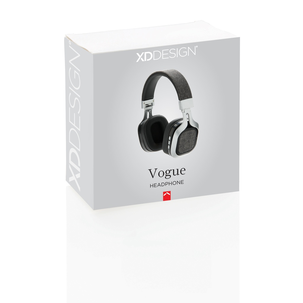 Vogue'i kõrvaklapid on trendikas kangast kõrvaklapid. Väljastpoolt on trendikas kangas ning kõrvapatjade ja peavõru mugav PU-materjal sobib ideaalselt pikaajaliseks kandmiseks. Kõrvaklappe saab kokku panna, nii et seda on lihtne reisile kaasa võtta. Vogue kõrvaklapid kasutavad juhtmevaba BT 4.0 optimaalseks ühenduseks kuni 10 meetri kaugusel. Sisseehitatud 200 mAh akuga oma lemmiklöökide kuulamiseks kuni 6 tundi. Käed-vabad funktsiooniga kõnedele vastamiseks. Kaasa arvatud mikro-USB-kaabel. Registreeritud disain®