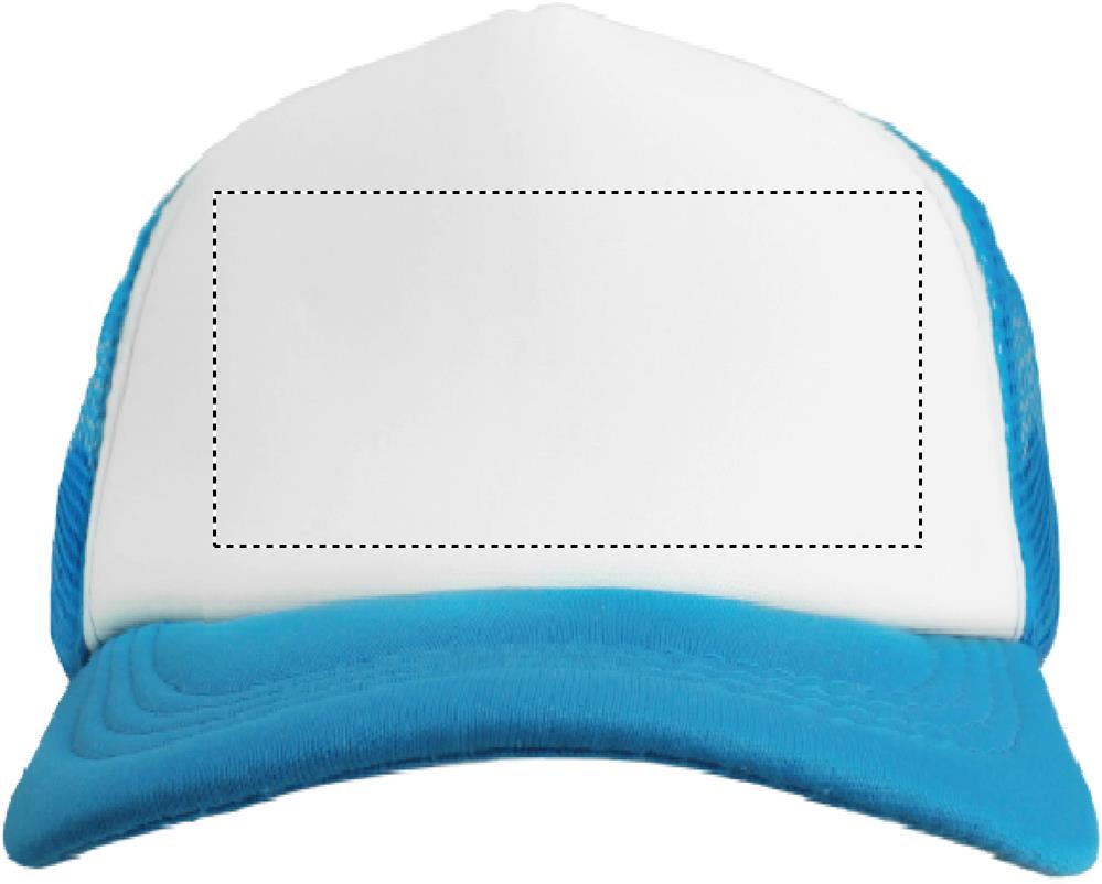 5 paneeliga veoautokork polüestrist 140-150 gr/m2 reguleeritava plastikust klõpsuga. Valge esipaneel ja värviline vahtpolüestertrikoosist visiir. Teised paneelid värvilise võrguga. Suurus 7 1/4.