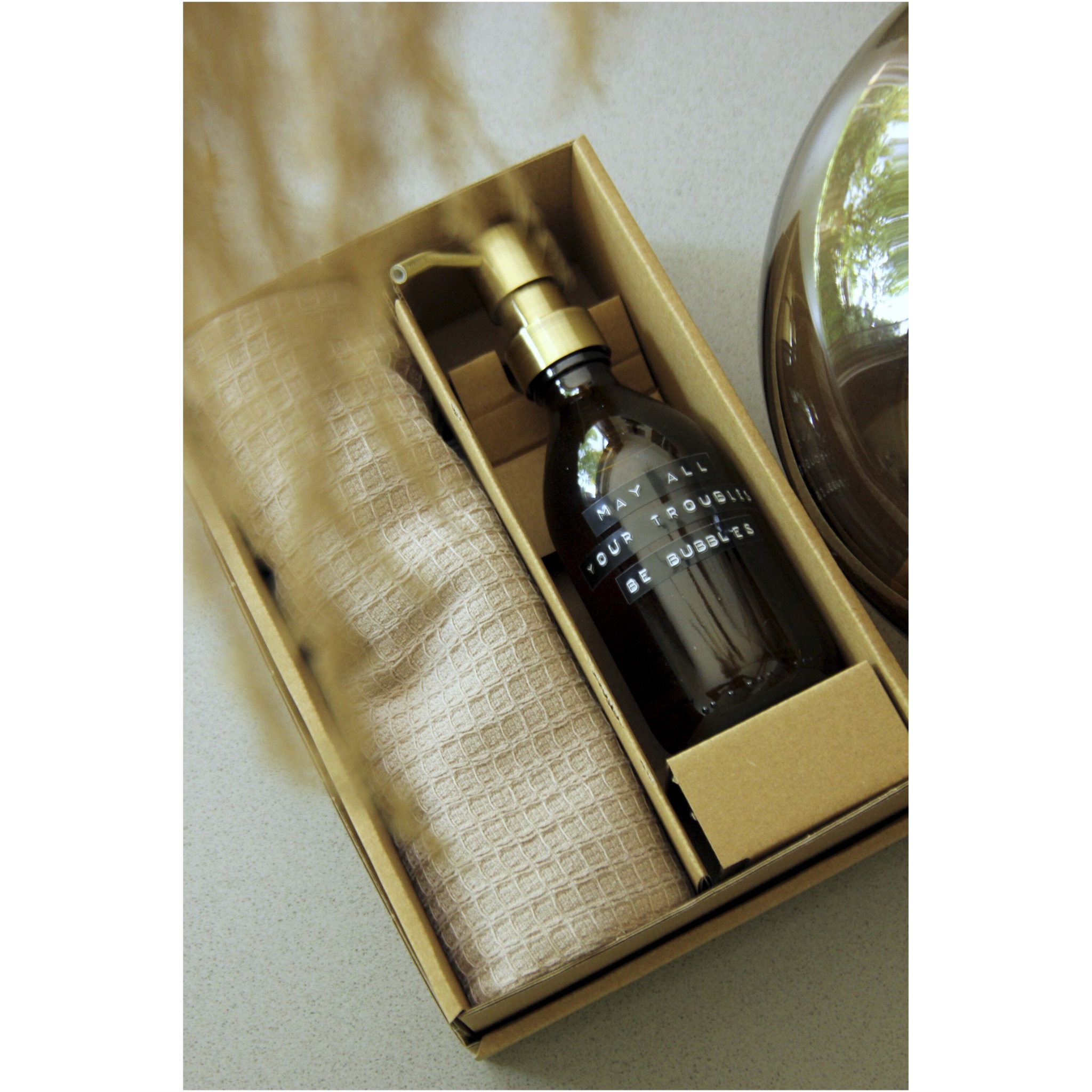 Kinkekomplekt, mis sisaldab 250 ml bambuselõhnalist käteseepi ja orgaanilisest puuvillast valmistatud beeži käterätikut. See komplekt sobib suurepäraselt kingituseks igaks elujuhtumiks.
