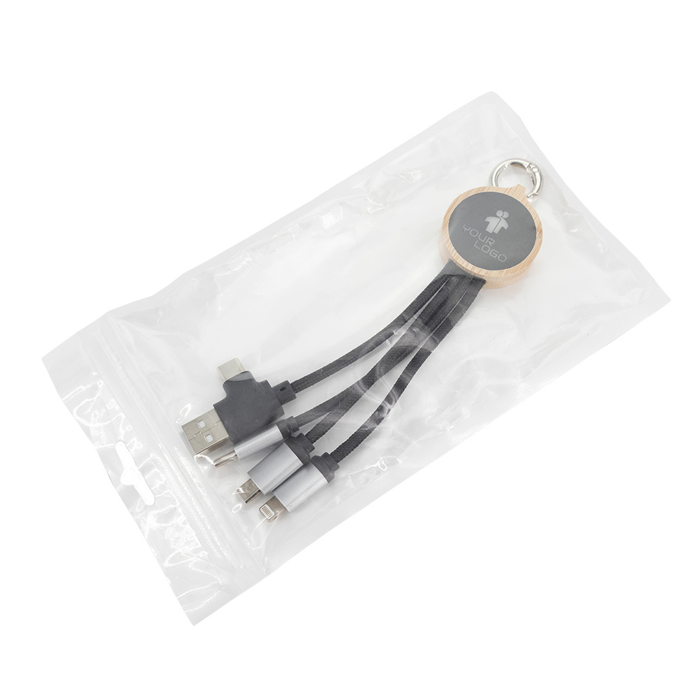 4-in-1-kaapeli, jossa on valaistu logo puukotelossa, LH-ZMU05