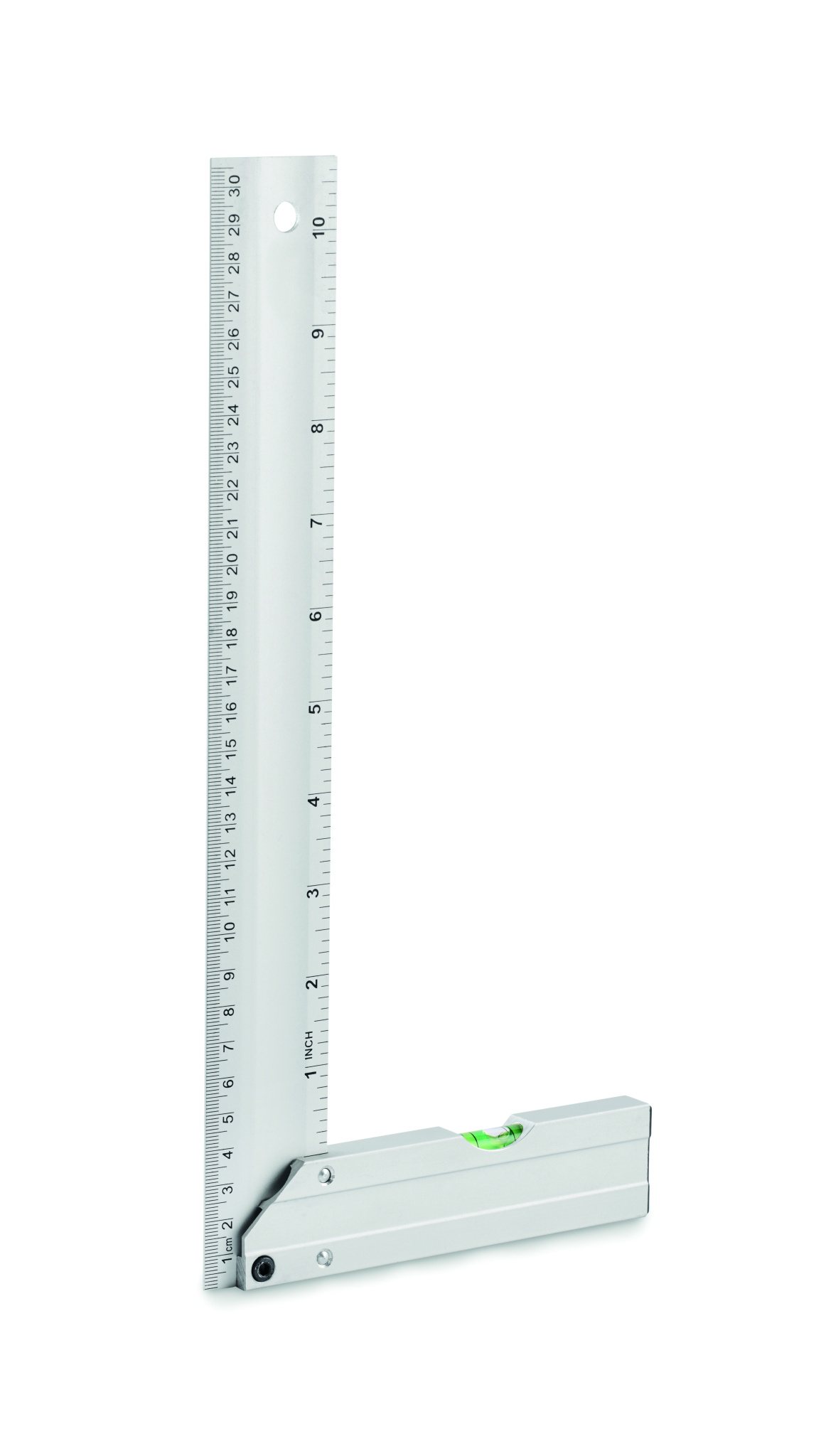 Alumiininen neliösarja vesivaa'alla. Viivain 30 cm.