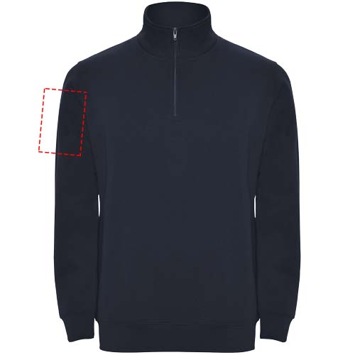 Collegepaita saman sävyisellä puolivetoketjulla ja korkealla kauluksella. Kauluksen sisäpuoli saman sävyinen. Kauluksen sisäpuolella vahvistettu sauma. Hihansuut ja vyötärö ribbineulosta 1x1. Kuvan malli on 185 cm pitkä ja hänellä on päällään koko M.
