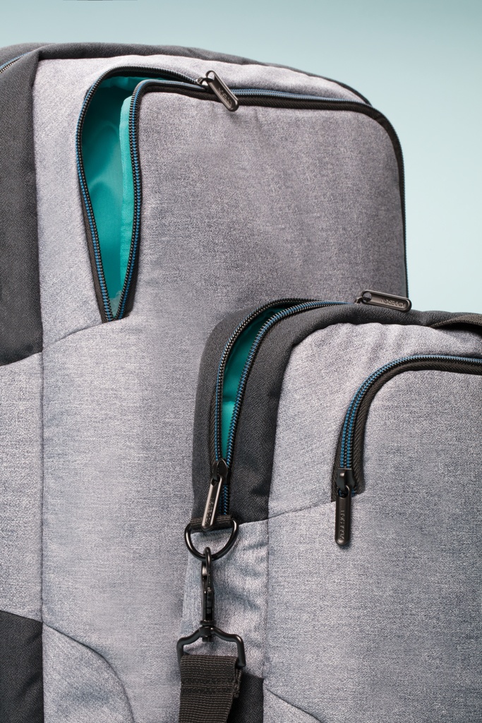 Uniikki 15” kannettavan reppu yhdellä suurella pääosastolla kannettavalle ja yksi etutasku. Innovatiivinen handsfree imusysteemi olkaimissa pitää puhelimen paikallaan. Yhdistä varavirtalähteesi helposti integroituun USB-latausporttiin ja lataa puhelin tai tabletti matkan aikana. Rekisteröity design®
