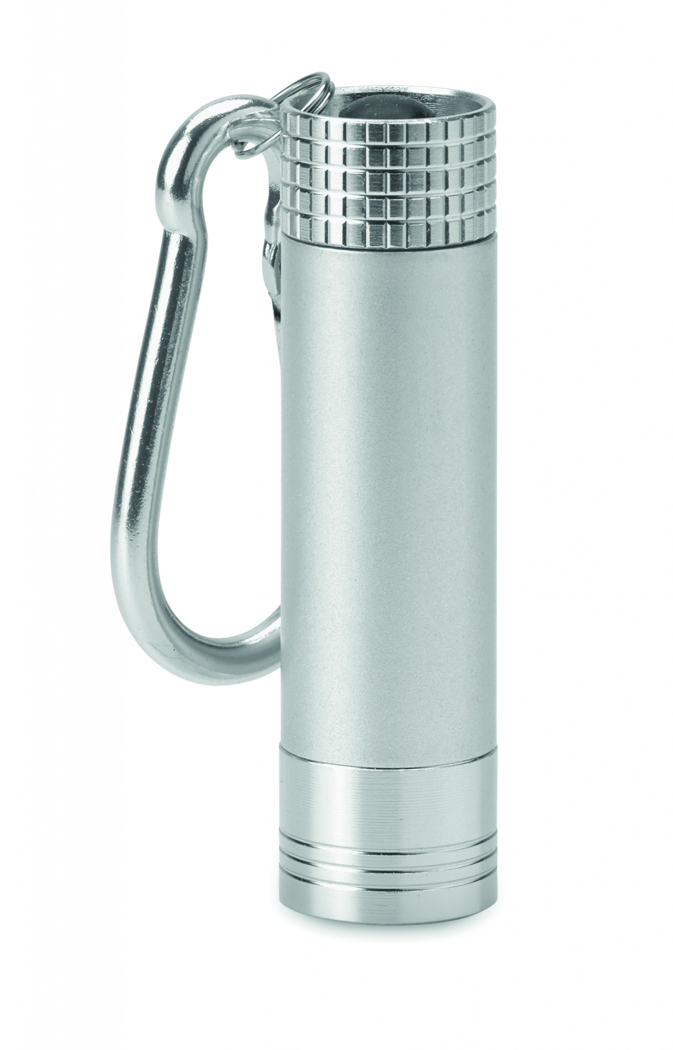 Pieni alumiini/ ABS ledvalo avaimenperä. Kaivertamalla logon tuotteeseen, saat logosi valaistua. 4 LR44-paristoa sisältyy toimitukseen.