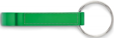 Kierrätysalumiinista valmistettu avaimenperä joka toimii myös pullonavaajana.